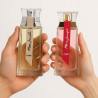 To aromat, który podkreśla kobiecość, charyzmę i elegancję. Przeznaczony dla uroczej i tajemniczej kobiety. Nutki owoców i kwiatów przepinają się z ciepłymi akordami liczi i piżma, a bursztyn i piżmo otacza aromat psotliwą elegancją.